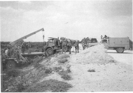 The collapsible 20,000-gallon tanks were to go next to the well where the ROWPU operated and be used for storage. This never happened. The well was not operable because the raw water pump's vertical lift capability was only 20 feet. The well was 40 feet deep. The tasking to complete one of the wells in the Jilib area went to the Navy. Several wells were available, but the one tested and most ready for completion was the well at Bandar Salom. While we waited for the Navy engineers to arrive, one team replaced a 10th Mountain Division team on the bank of an irrigation canal located three miles outside Bandar Salom between Bandar Salom and the Task Force Durham base camp. The canal location was not ideal. The intake was from surface water. Seemingly millions of "roily bugs" crawled over the equipment. The preventive medicine team reluctantly approved the water for bathing only. They later changed their mind when a soldier found a "roily bug" in his canteen. Attempts were made to prevent the bugs from getting into the tank. If the tops of the onion skins were off during the day, no bugs would get into the water. The bugs apparently sought the shadow of the cover. Unfortunately, by doing so, dust that carried cow fecal matter would land in the water because several herds passed the site daily. The original site closed after the Navy arrived with the completion kit. The overall production of the Bandar Salom site was hampered by the ability of the sump pump to deliver water. It pumped at 16-gallons per minute (GPM) while the ROWPU could pull at 36-GPM. Thus, the well pump worked for two hours filling a 3,000-gallon bag, and the ROWPU worked for 20 minutes before it would have to shut down. The fix was to idle the production capabilities down to the same as the well pump. Also, no water was wasted. The "bad" water produced by the ROWPU recycled into the reserve tank along with the "not-so-bad" water. Together with the raw water from the sump pump, a production of 14-GPM was achieved. The water purification section adjusted operation hours to meet the demand. Although no water needed to go to Kismayo, daily consumption in the Jilib area of operation was 4,000 to 6,000 gallons a day. The 331 soldiers at Bandar Salom used approximately 3,000 gallons per day by showering. The other units used less because of using Australian shower equipment. The most helpful factor in the water mission was the ability to get water from Mogadishu. Each logistics package or "log pack" that arrived had 10,000 gallons of potable water carried by two 5,000-gallon tankers. The original concept of the tankers was to transport only enough water to start the retail operation of the 20,000-gallon storage tanks. I chose not to place the 20,000-gallon tanks until the ROWPU well site was operable. When the well was finally completed, Task Force Kismayo asked for one water team with storage capability to set up at the port for wash rack operations. That is where the two 20,000-gallIon collapsible tanks went. I continued to draw water from Mogadishu even though the Bandar Salom well production could have kept up with the area demand. One problem was that each unit lacked enough organic potable water storage capability for the demand without traveling the 15 to 40 miles with the water trailers or "water buffaloes" several times a day. Also, the task force elements, the LSA included, had no storage capability. The fix: place 3,000-gallon onion skins at each site. In doing so, the 5,000-gallon water tankers had to stay to distribute as needed. The soldiers and equipment were replaced each log pack. The 10,000 gallons delivered each log pack satisfied the Task Force Durham base camp and 63d CSE, who had moved forward, while the ROWPU produced mainly for the Bandar Salom camp only. The original orders for the maintenance support team (MST) told them to "provide direct support maintenance." The company's orders given to the staff sergeant in charge of the MST said to report to the S 1 of the task force. My operations order stated that the staff sergeant was to report to me. Not until we had good communications was the issue settled. The MST was part of the LSA, not Task Force Durham. The noncommissioned officer in charge (NCOIC) of the MST relayed that he was doing organizational maintenance for the Engineers and LSA. The Engineers, as well as us, formed without organizational capabilities. This provided good opportunities to cross-train some of the younger soldiers in different levels of maintenance. Two specialists operated the radio teletypewriter (RATT) effectively to get accurate communications back and forth from battalion. The Logistic Status Report (LOGSTAT) was sent through teletype. The other great aspect of the RATT was the Military Affiliated Radio System (MARS) capability. This is where amateur radio operators in the U.S. receive a transmission and complete a phone patch. The original antenna configuration did not allow for MARS capability. The fix was to make a field expedient antenna out of WD-1 wire. Within the 17 nights the team had MARS capability, the team made over 500 attempts at communication, with more than 350 connections. The connections started around 2200, and many times continued until the operators had to switch back to normal operations at 0600. Soldiers from more than 30 different companies made connections. They ranged from 10th Mountain soldiers from Kismayo to 7th Transportation Group line-haul soldiers from Mogadishu. On two occasions, a Military Police (MP) platoon stopped and stayed the night just to get the opportunity to make calls back home. The Joint Task Force commander's visit happened to coincide with a ceremonial raising of the Somali flag in Jilib in front of the designated civic building. This was the first time since the conflict began that the Somalis had the national flag displayed in town. The building had nothing more than rooms with crude tables and chairs built by the Engineers. Ch